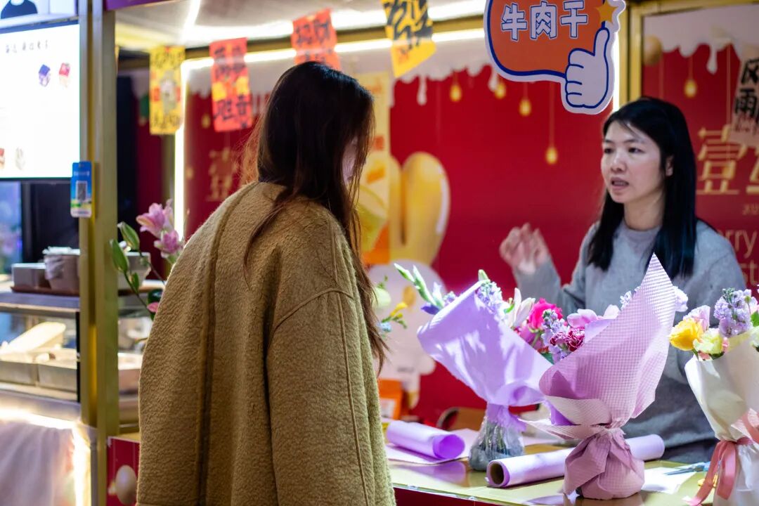 今年情人节,陈秀贤迎来创业的首场大考。面对节日暴增订单,她与老师二人全天奋战到凌晨,单日销售花束突破60束,销售额达5000元。