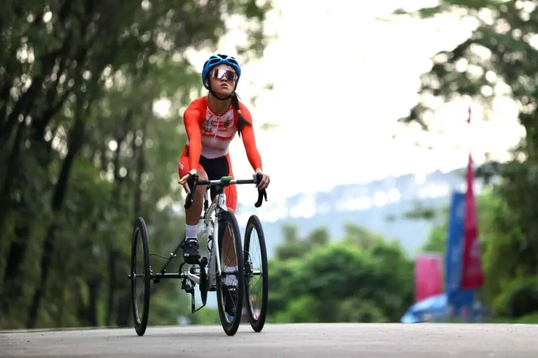 幼年因脑瘫导致肢体运动功能障碍的武文茜,2023年入选广东省残疾人自行车队。“刚开始训练时,我连平衡都难以掌握。”武文茜在赛后激动地说。