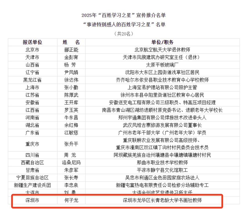 深圳唯一!何子龙荣膺2025全国“百姓学习之星”