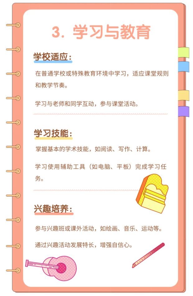 4. 社区资源利用:充分利用社区资源,如特殊教育学校、康复中心、社区活动等。