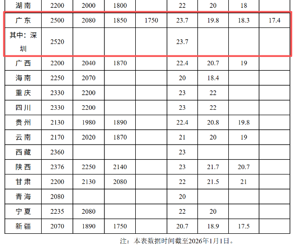 2026年最低工资标准公布!在深圳工资不得低于这个数