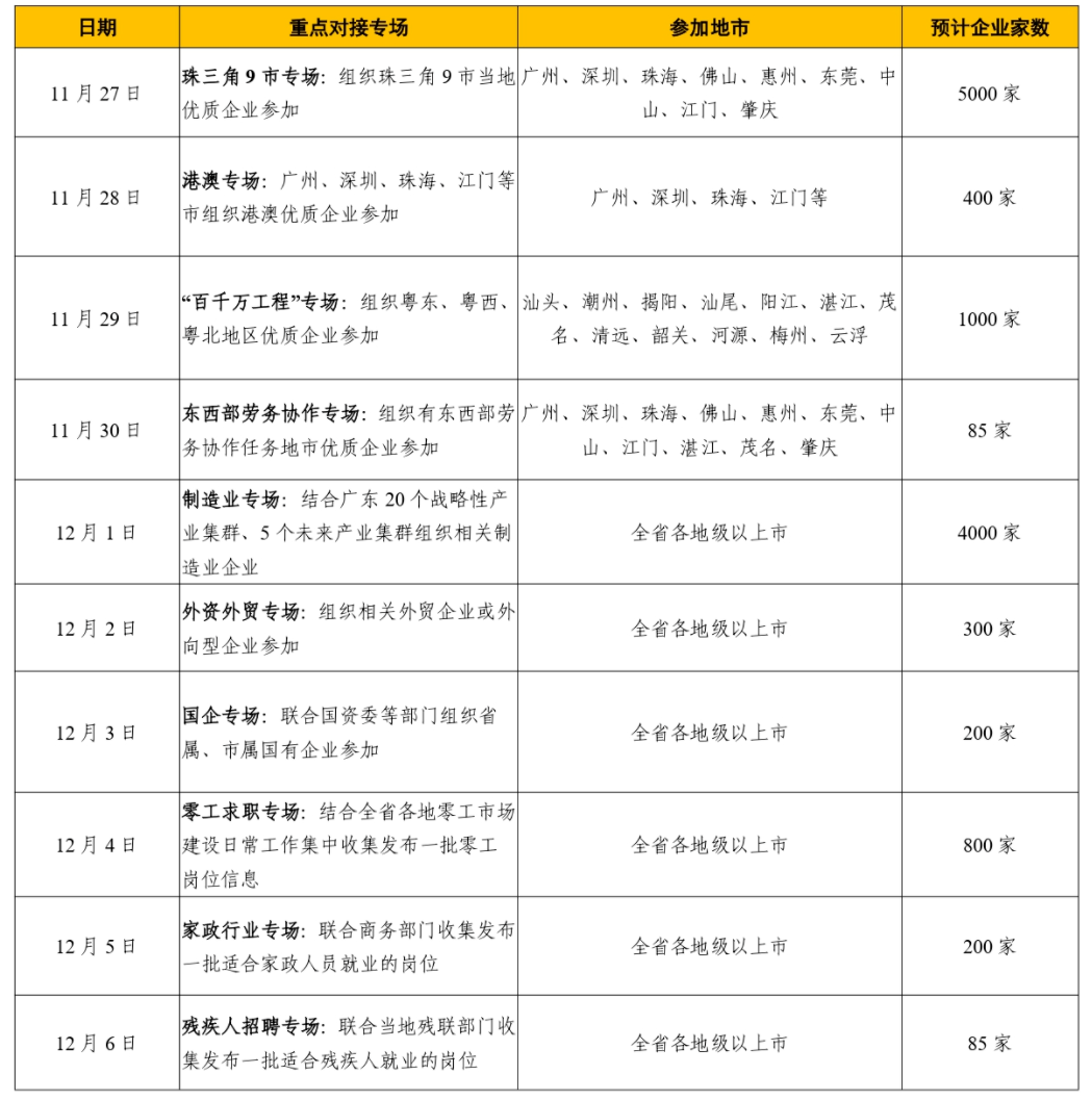 ●活动平台:广东省就业一体化公共求职招聘服务平台、“粤就业”小程序