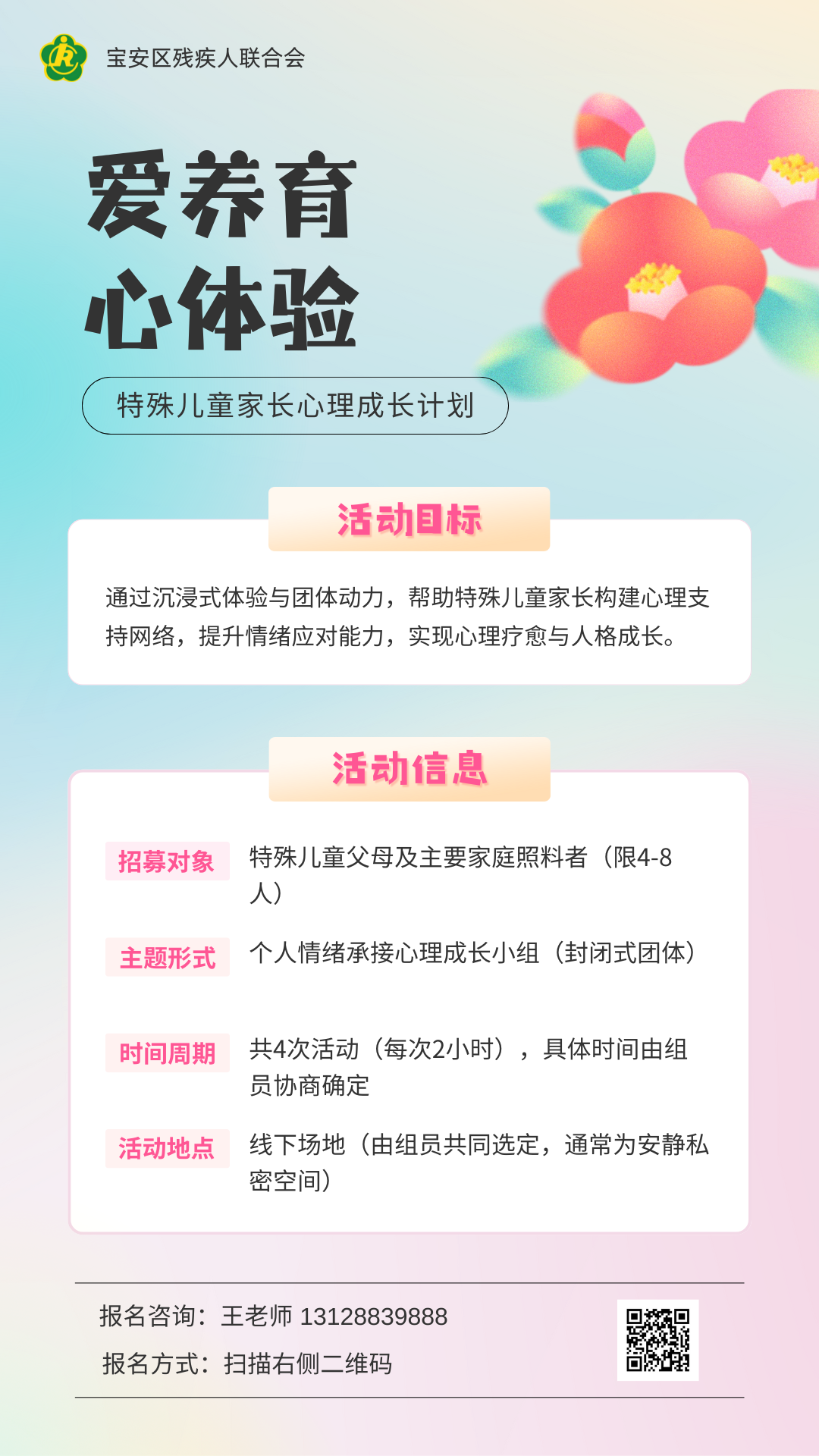 免费参与!宝安区残联特殊儿童家长心理成长小组招募中~