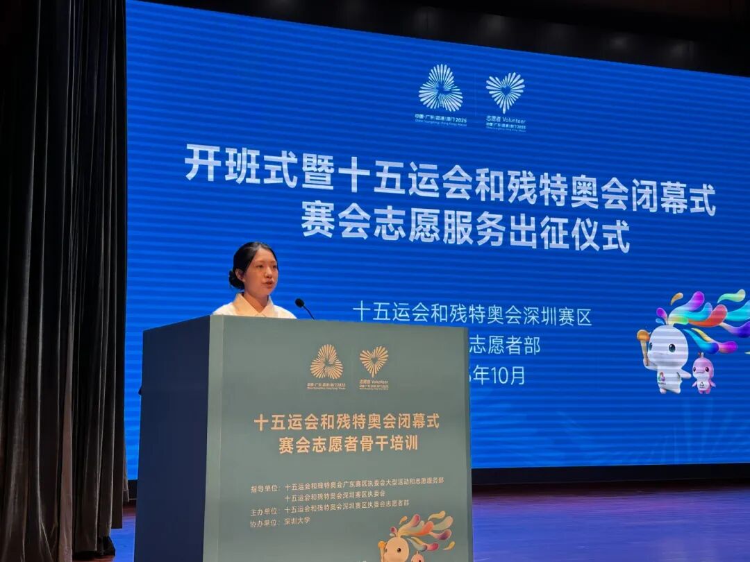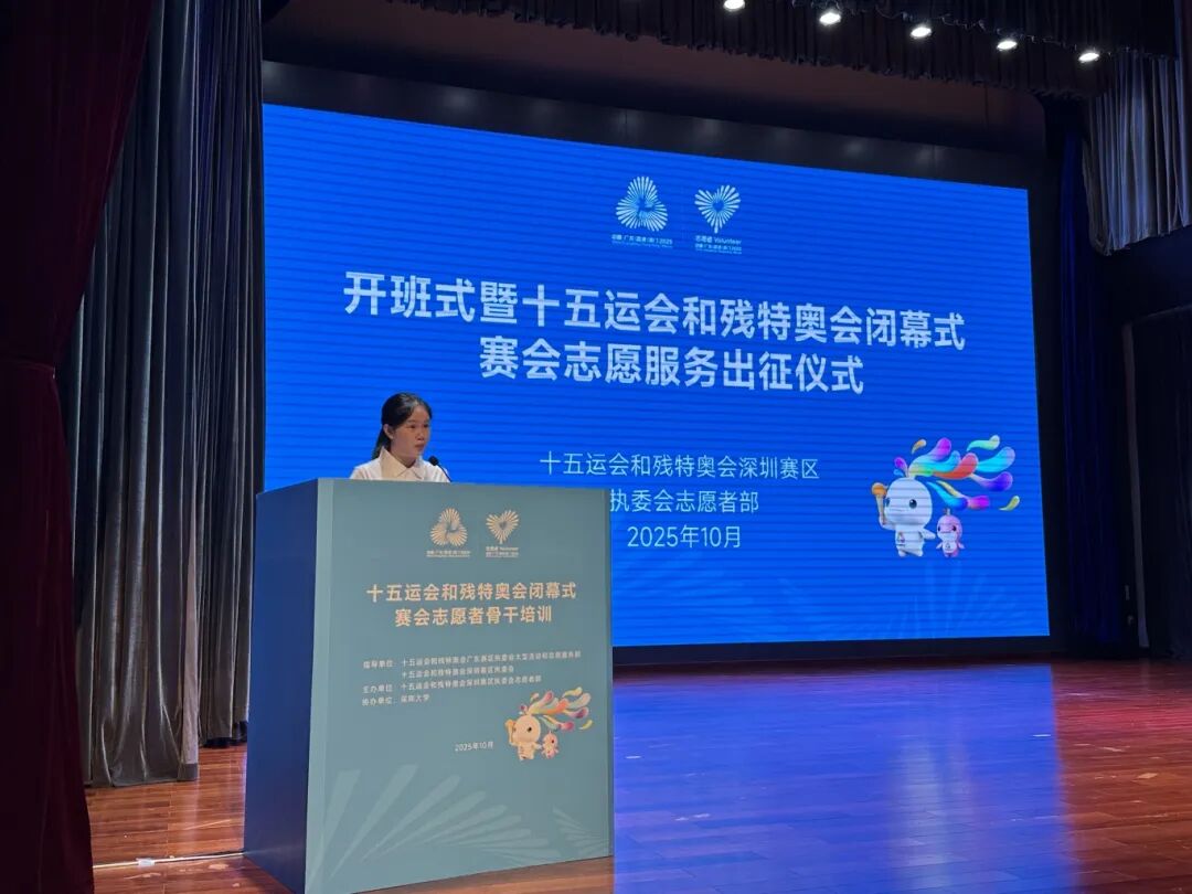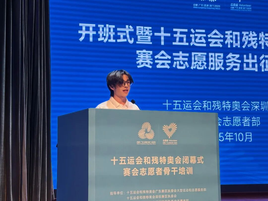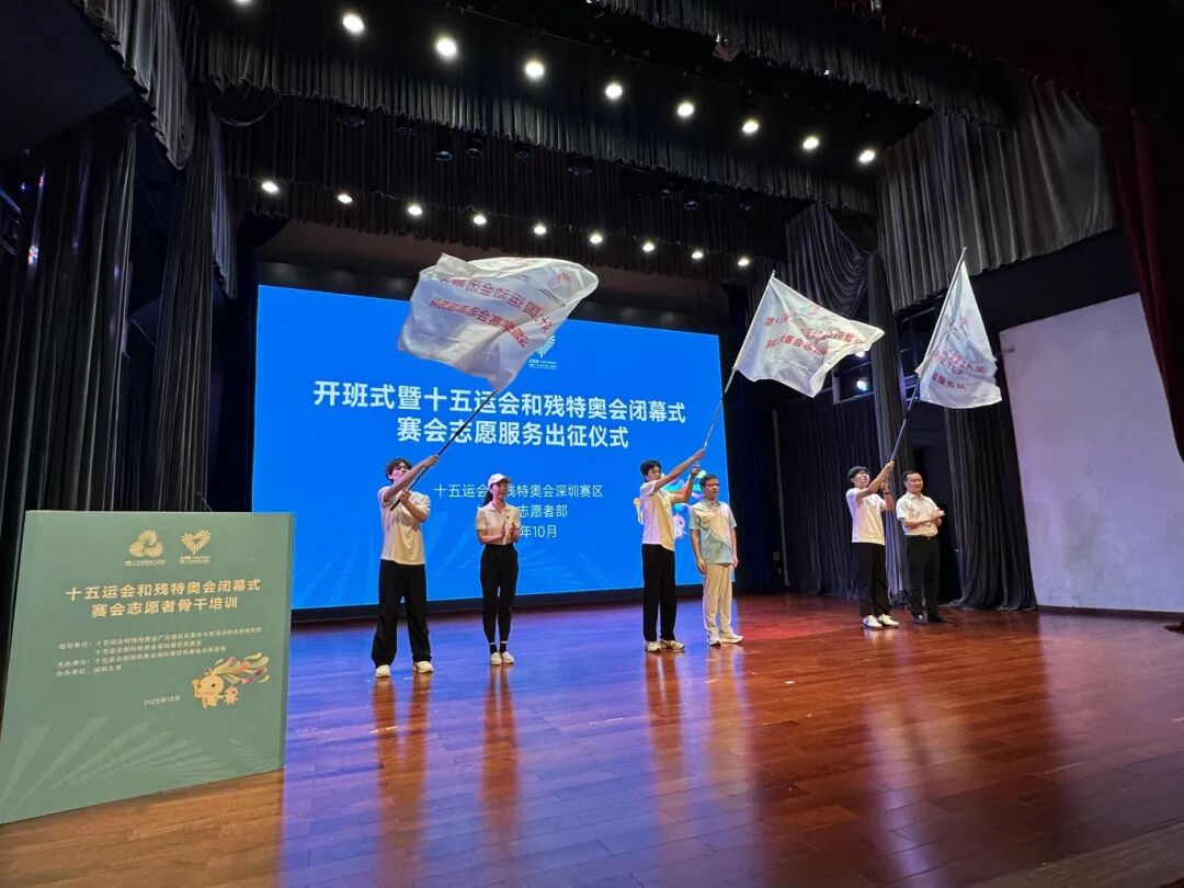 出征和开班仪式结束后,十五运会和残特奥会闭幕式赛会志愿者骨干培训在当天于深圳大学粤海校区正式启动。