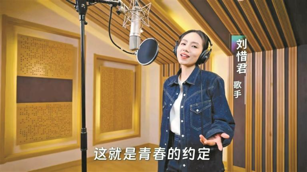 歌手刘惜君录制志愿者主题曲《我们都在这里》。视频截图