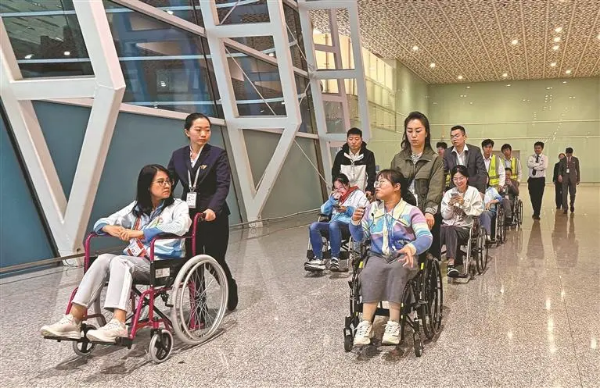 面对十五运会和残特奥会的抵离保障任务,深圳机场全面升级服务能级,通过配置电梯盲文按钮、盲道、轮椅通行斜坡、直梯前智能平移隔离柱等无障碍改造和成立保障专班与“双中心”联动体系,实现了“一眼就能看见、一步都有引导”的精细化服务。