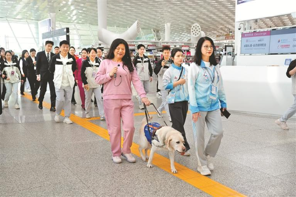 12月2日,深圳机场抵离服务中心邀请“一场三站”的一线抵离工作人员70余人,组织开展“导盲犬无障碍出行服务”的培训及演练。本次培训特别邀请了广东省康复医学会视觉康复分会理事黄跃红,重点开展残特奥会携带导盲犬的涉赛来宾的无障碍服务培训,以保障涉赛来宾及其导盲犬高效、安全、顺畅抵离。