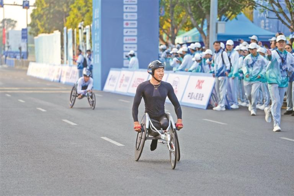 来自辽宁的运动员金华以1小时27分04秒的成绩获得残特奥会田径男子全程马拉松T54级的冠军。颁奖典礼后,金华接受了本报记者的采访,并透露自己的夺金秘笈是在宝安获得的舒适睡眠。