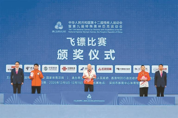 咻——飞镖离手,命中靶心!12月10日,深圳市体育中心体育馆内掌声雷动、温情涌动。随着肢体坐姿组男子单人赛最后一镖精准命中靶心,全国第十二届残疾人运动会暨第九届特殊奥林匹克运动会飞镖(大众)比赛圆满落下帷幕。为期4天的赛事中,来自全国各省、市、自治区共26支参赛队伍、263名运动员齐聚鹏城,在镖盘前挥洒汗水、追逐梦想,16枚金牌各有归属,书写了“包容、融合、自强”的残特奥新篇章。