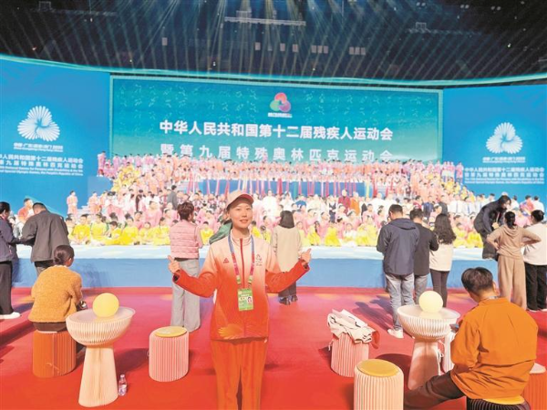 宝安海乐社区内,活跃着一位“99后”视障女孩,她的身份多样,是瑜伽教练、书法培训老师、主持人、网络主播,12月15日,兰然受邀参加了残特奥会闭幕活动,诠释着“残健共融、湾区同心”的温暖主题。
