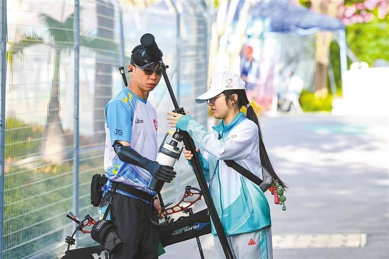 残特奥会期间,深圳创新“馆校对接”模式,联动广东技术师范大学、深圳职业技术大学等14所高校组建助残志愿服务队,所有残特奥会志愿者均完成手语沟通、轮椅推扶、盲道引导等专项培训。在深圳举办的残特奥会羽毛球(大众组)赛事现场,广东技术师范大学的志愿者黎美金用手语为听障运动员讲解比赛规则,她受访时说:“能通过手语让运动员清晰了解赛事安排,我觉得这份付出特别有意义。”深圳职业技术大学志愿者郭晓佳摸索出“搭肩引导”的服务方式,护送视障运动员往返赛场,他表示:“我们的服务不是过度照顾,而是让运动员感受到平等与尊重。”