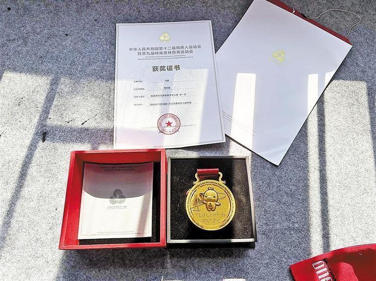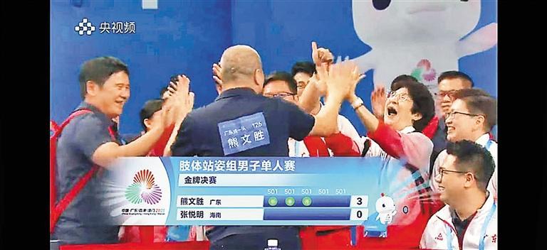 在不久前举办的全国第十二届残疾人运动会暨第九届特殊奥林匹克运动会(以下简称残特奥会)飞镖(大众)比赛肢体残疾站姿组男子单人赛决赛现场,深圳盐田60岁老将熊文胜手握飞镖,气定神闲。电子记分牌上显示“501分”,他需要在最少轮次内将分数减至零。12镖之后,全场沸腾——他以黑马之姿击败上届冠军,创下了盐田区残疾人参加体育赛事历史最佳成绩。而这枚沉甸甸的金牌,也是他送给自己最珍贵的退休礼物。