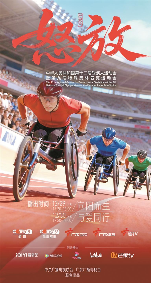 由中央广播电视总台与广东广播电视台联合出品的残特奥会纪录片《怒放》(上、下集),将于12月29日、12月30日17时30分上线。
