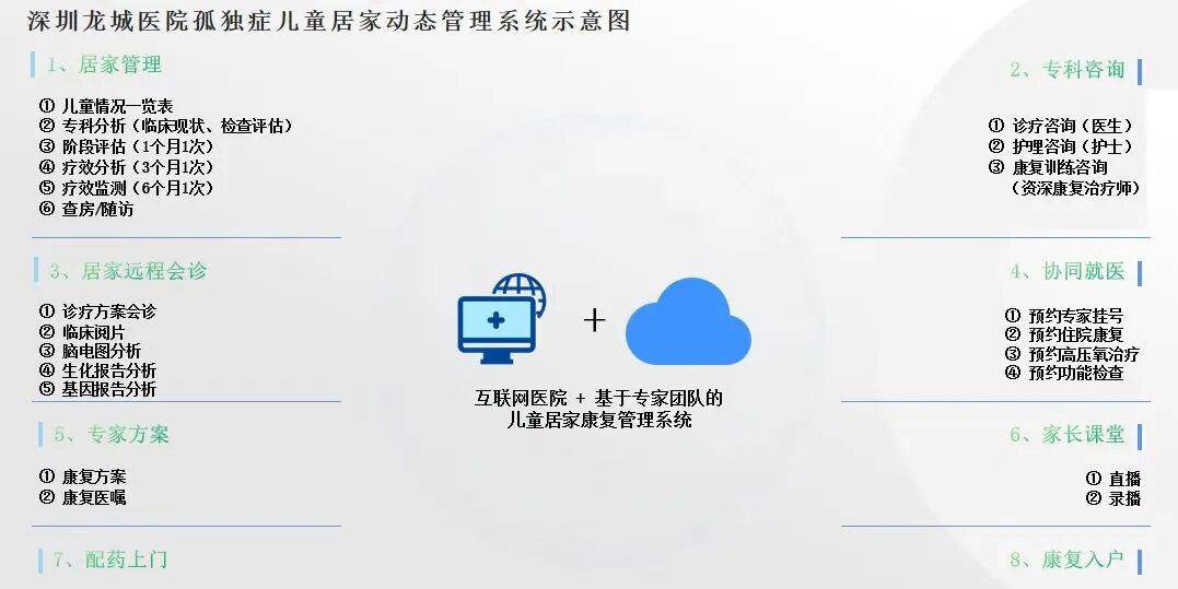 为了给0到6岁的孤独症儿童家庭提供便捷、高效的居家动态管理服务,8月13日,深圳龙城医院儿童友好康复病区暨互联网+孤独症儿童居家动态管理服务正式上线发布。