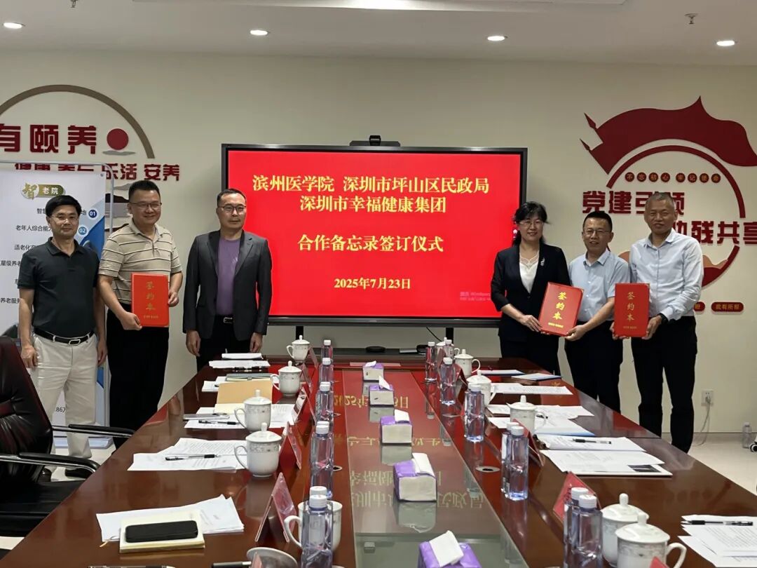 实地考察结束后,三方召开座谈会。会上,三方分别就残疾人康复服务体系建设现状、儿童康复尤其是孤独症康复合作规划、滨州医学院有关学术专长与特色等事项进行专项汇报,并就推动共建大湾区残疾人康复高地、共创残疾人学生实习实训基地、共促残疾人学生就业创业、共享康复辅具科研成果转化等合作事项展开深入研讨。随后,三方正式签订残疾人康复服务《合作备忘录》,标志着坪山区“校地企”深度融合机制正式落地,通过滨州医学院的学科优势与地方产业资源协同,为残疾人康复事业高质量发展构建起创新生态体系。