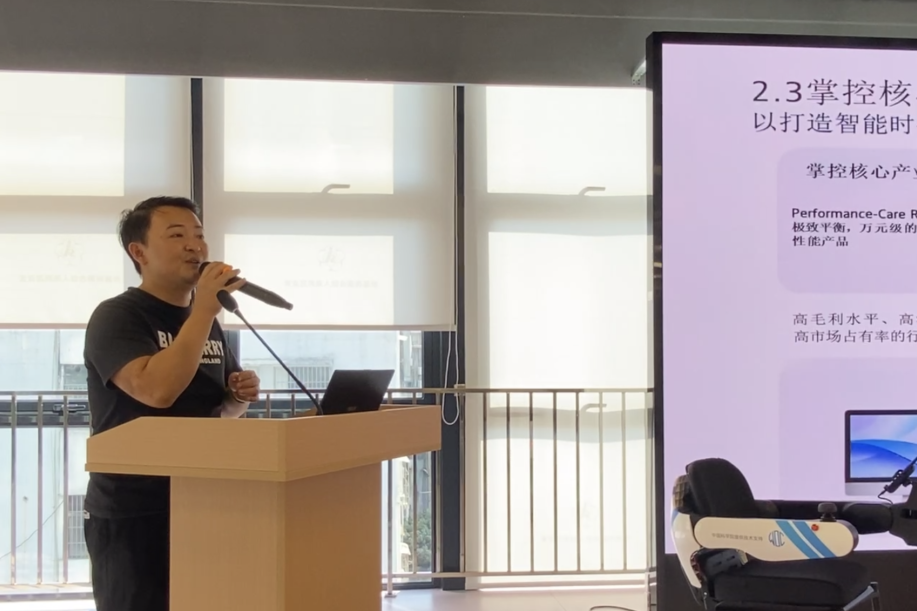 图:万德昌品牌总监李慕开介绍智能辅具产品