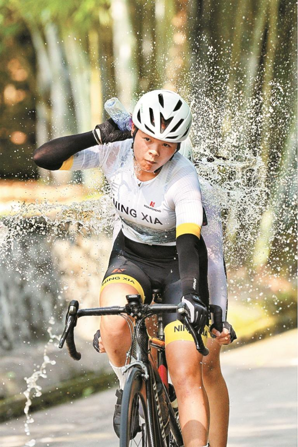 ▲选手浇水降温。主办方供图