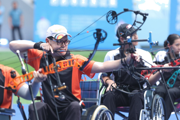 12日下午4时整,残特奥会射箭测试赛复合弓个人50米决赛、复合弓团体50米决赛准时开赛。赛场之上,残疾人射箭运动员们全神贯注,随着一声声“十环”“漂亮!”的喝彩,运动员们脸上洋溢出自信的笑容。17时10分,两场决赛演练顺利结束,共决出2枚金牌,为本次射箭测试赛的竞技环节画上了圆满句号。