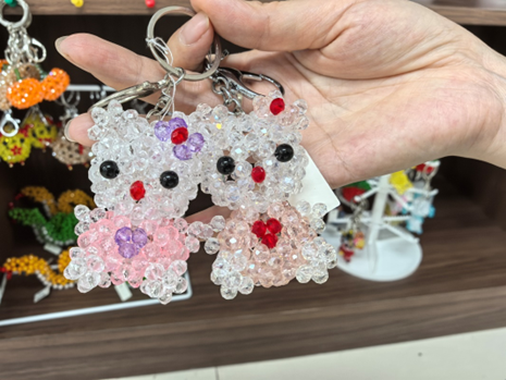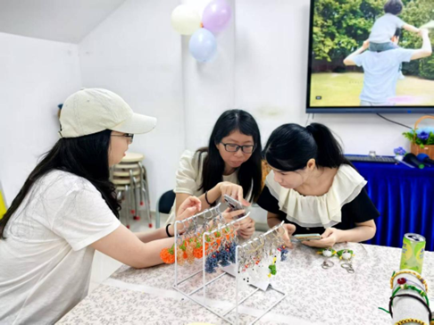小雅的创收离不开福田区残联和街道职康提供的指导和支持。在制作环节,社工蔡凤玲观察到范小雅最初使用成本较低的塑料串珠,便建议她升级为质感更佳的水晶串珠,有效提升了产品的价值和吸引力。在销售环节,社工通过市场反馈分析,发现单价在20元以内的小挂件最受消费者欢迎,便及时建议小雅调整产品开发方向,多制作此类适销对路的产品。