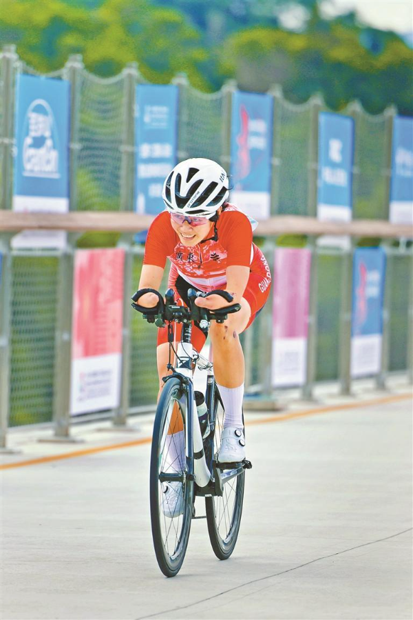7月3日的残特奥会自行车赛场上,运动员阮建平在骑行时不慎侧翻,锁骨与头部率先着地。撞击声回荡片刻后,她扭动着身体,支撑起没有双手的身躯。此刻她心想:“我不能拖累队友。”她强忍伤痛,咬着牙,重新开启团体竞速赛,最终与队友合力夺得冠军。