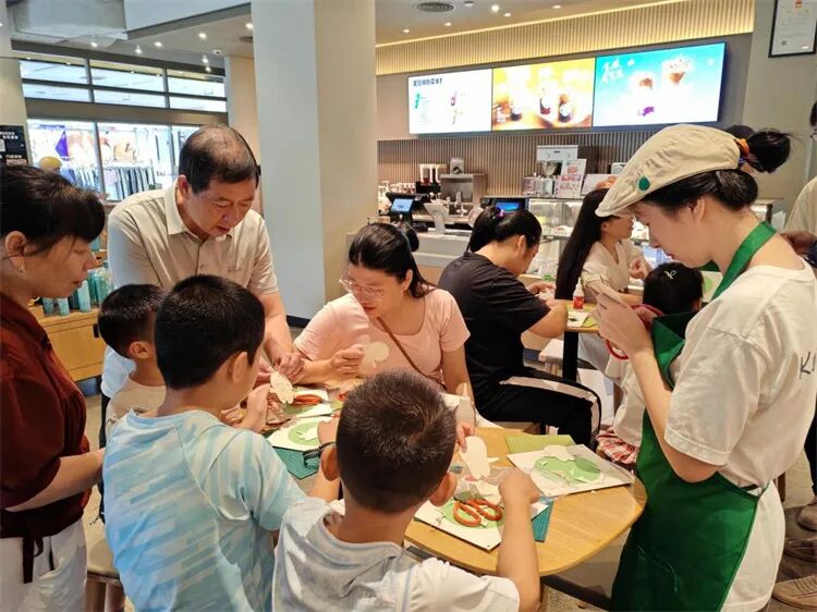 近日,福田区扶残助残关爱空间星巴克益田村手语门店咖啡芬芳与欢声笑语交织,20余名残疾儿童和家长、社区青少年志愿者与热心顾客齐聚一堂,在非遗鱼皮画艺术家的带领下,围绕第十五届全国运动会和全国第十二届残疾人运动会暨第九届特殊奥林匹克运动会(以下简称十五运会和残特奥会)吉祥物“喜洋洋”和“乐融融”创作鱼皮画作品,为即将到来的体育盛事注入别样温情。