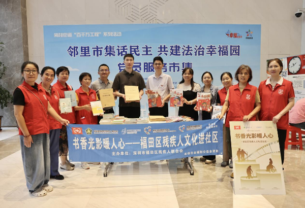 这份文化暖意的延续,早从九月便已悄然启程。9月19日下午,福田区梅林街道党工委携福田区手孖岭社区党委共同举办的党员服务市集正式启幕,主题定为“邻里市集话民主 共建法治幸福园”。其间,以“书香光影暖人心”为宗旨的捐书活动也同步启动。自9月下旬活动展开以来,福田区梅林街道孖岭社区党委一直为社区残疾人、老年人及全体居民提供丰富多样的无障碍阅读服务,在社区内广泛播撒了平等与包容的文化理念。此次捐赠的58本书籍得到了中央财政福彩公益金和福田区残疾人联合会的鼎力支持,为社区残疾人、老年人及全体居民构筑了一座通往知识殿堂的桥梁。
