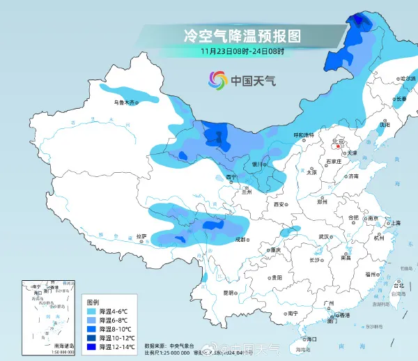 后天,南方大部也将加入降温行列。