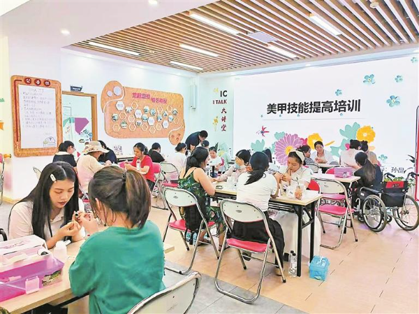龙华区残障者就业创业基地组织残疾人开展美甲技能培训。
