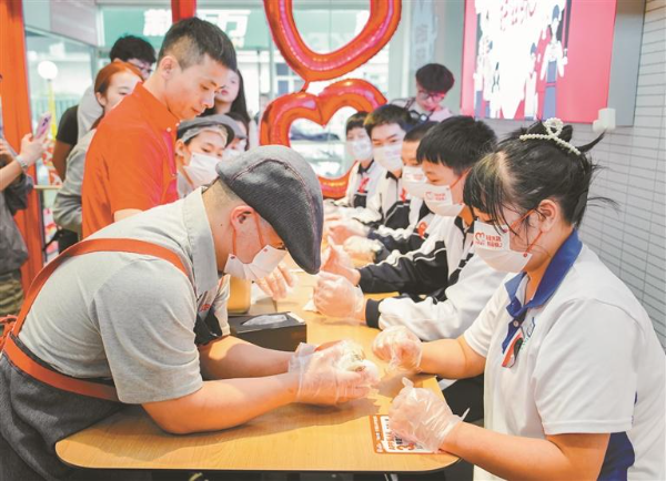 12月2日,在第34个国际残疾人日即将到来之际,福田区福民路的肯德基天使餐厅内格外温暖,一场名为“肯定有爱·天使餐厅特别体验日”的主题活动在此举行。来自深圳市社会福利服务指导中心(简称市福利中心)的5位孤残青少年,走出福利院的“天使的店”,来到肯德基的“天使餐厅”,与肯德基的“天使员工”们结对互动,一起探秘餐厅运营的多个环节,亲手制作爱心汉堡,青少年们在参与中理解“残健共融、一起自在”的理念。