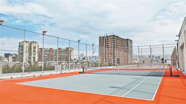 二层通过架空设计打造了10片全场、4片半场篮球场,通透的空间布局搭配良好的采光条件,让运动体验更舒适。体育中心屋顶,2片五人制足球场、2片七人制足球场,3片网球场错落分布。阳光下的足球场绿草茵茵、空气清新,人们在运动之余,还可远眺阳台山自然风光。除核心运动场馆外,项目还配套了乒乓球馆、健身房、舞蹈室、攀岩场地等特色空间。