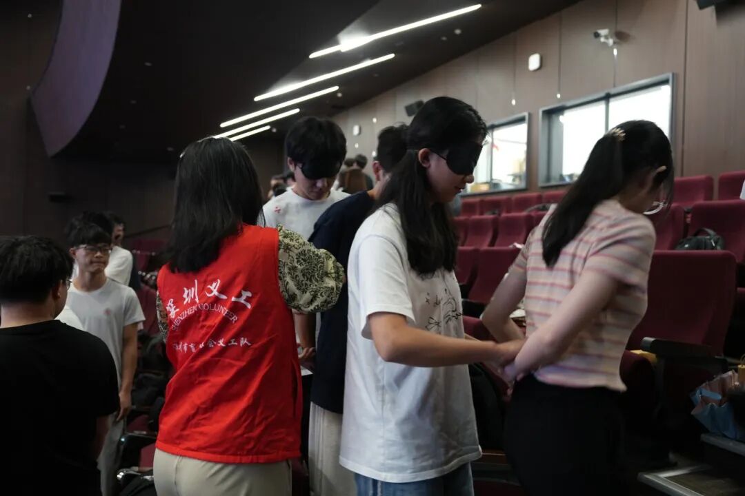 深圳市盲人协会会长马景阳以“眼前的黑不是黑,你说的白是什么白”引导志愿者深入思考视障人士的困难,通过“问、拍、引、报”四步法拆解导盲服务流程——主动询问需求、规范肢体接触、动态语言引导、精准信息传递,配合蒙眼实操环节,让志愿者切身体会视障人士的困境,掌握服务要领。