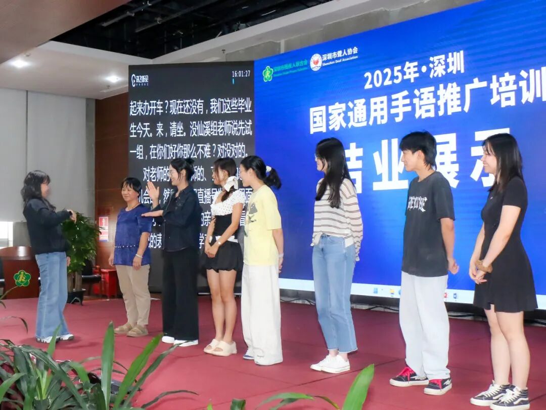近日,深圳市2025年度国家通用手语推广培训在市残疾人综合服务中心顺利开展。此次培训由深圳市残疾人联合会(以下简称市残联)指导、深圳市聋人协会(以下简称深圳市聋协)主办。培训以线下授课同步线上直播授课的方式进行。两天培训线下学员59人;线上微信学习群学员200余人,直播观看人数累计6000余人,培训成效卓著。