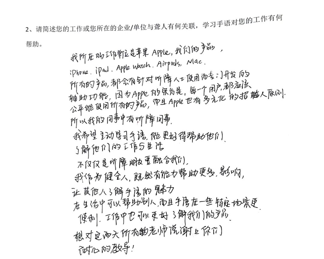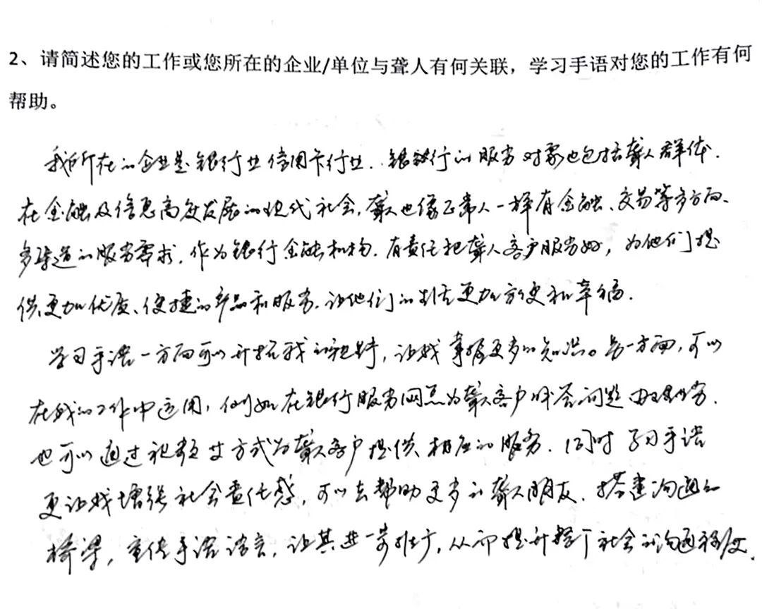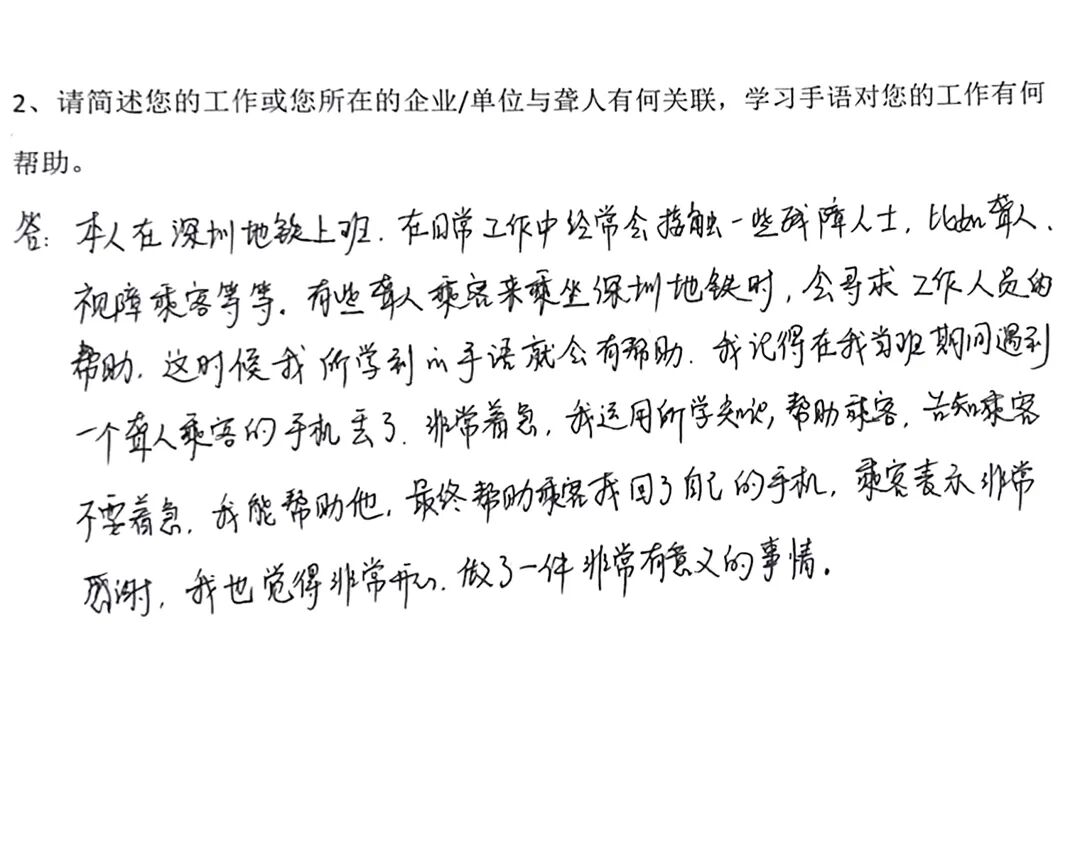 “无声体验”跳出了冗长说教的框架,以“沉浸式”的体验让健听学员真切触摸到听障人士的困境。当纸上不同的答案摊在桌上,没人再需要解释——原来那些健全人能随意听懂的信息,对听障人士而言要跨过这么多猜测的坎;当声音被抽离,那些习以为常的信息获取方式会变得如此脆弱,而这恰恰是听障人士在日常生活中需要反复面对的境况。这种“亲历感”带来的触动,或许比再多理论讲解都要来得深刻。