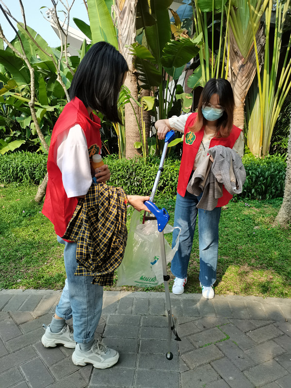学习结束后,团员们换装,以一名团员志愿者的身份在胜利大营救纪念碑广场周围捡拾遗落的垃圾,为深圳市的青山绿水贡献力量。