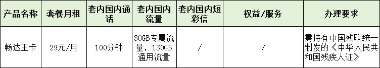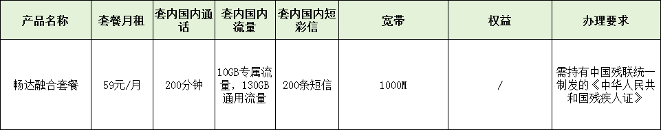 面向所有持残疾人证的残疾人,主打“大流量+优惠资费”: