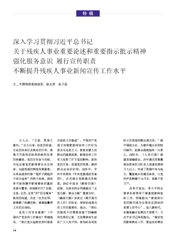 中国残联党组成员、副主席张卫星:强化服务意识 履行宣传职责 不断提升残疾人事业新闻宣传工作水平
