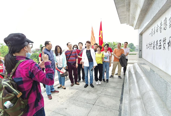 在周文雍陈铁军的烈士陵园,深聋协一行怀着崇敬的心情瞻仰了烈士纪念碑,并举行了默哀仪式。导游和手语翻译者满怀深情地讲述了周文雍、陈铁军烈士为革命抛头颅、洒热血的英雄故事及他们可歌可泣的“刑场上的婚礼”,周文雍和陈铁军两位烈士代表了一代又一代中国共产党人顽强拼搏、不懈奋斗、视死如归的革命精神。聋友们表示,今天的幸福生活是英烈们的献血换来的,非常地感恩和崇敬,一定会好好珍惜生活,努力回报社会。