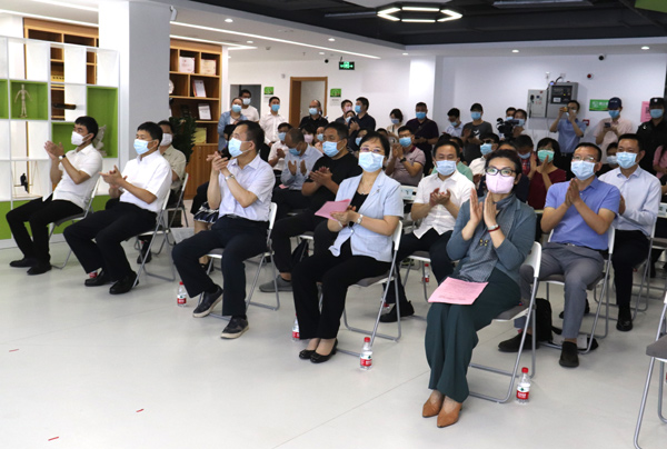 市政协常委、社会法制和民族宗教委员会主任李振河,人大常委会社会建设工作委员会副主任蒋勇,市残联党组书记、理事长侯伊莎等一同为孵化空间揭牌,空间运营负责人陈维伟带队参观孵化空间。