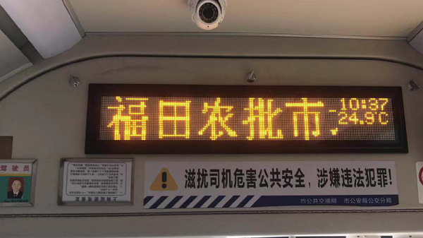 目前我市实现车厢电子显示屏报站近9000辆,安装导盲系统公交车1千辆左右,配备无障碍踏板公交车1400多辆。