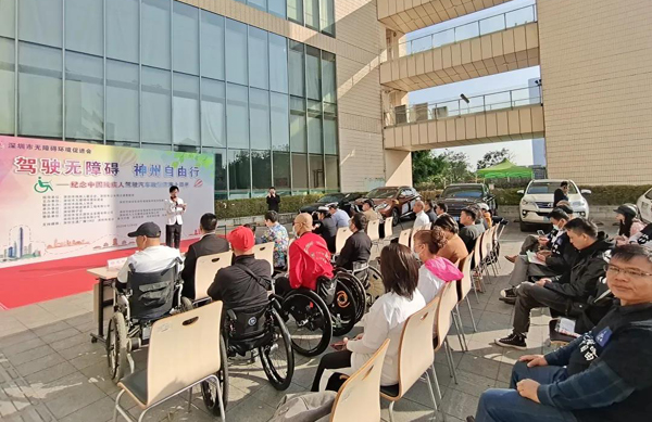 12月4日下午,“驾驶无障碍 神州自由行——纪念残疾人驾车政策出台十周年”自驾游活动启动仪式在深圳市残疾人综合服务中心举行。深圳市残联党组成员董兰芝,深圳市残联无障碍环境建设督导总队副总督导陈雷,深圳市公安局交通警察局党委委员、车管处处长黄毅,深圳市公安局交通警察局警官熊崇君,深圳广电集团交通广播新闻部主任孙立遐,深圳市综安机动车驾驶技术培训有限公司副总经理唐旅平,深圳市无障碍环境促进会(以下简称“促进会”)会长余冠彬,副会长邓志新、孙在良等出席了本次启动仪式。