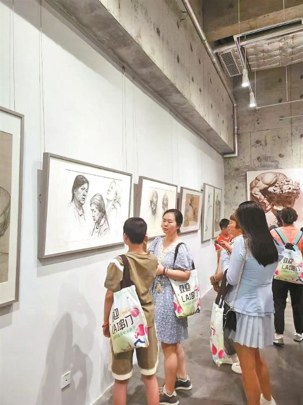社区居民在“欢迎LAI串门”邻里交流季系列活动中参观艺术展。